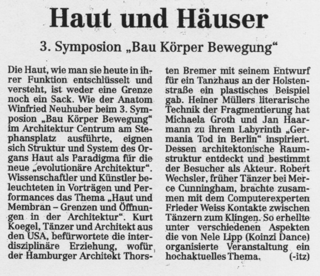 Was den Häusern die Wände ist dem Körper die Haut. Der Vergleich lohnte sich und neben Architekten und Tänzern wurde deswegen auch ein Anatom zur dritten Tagung über Tanz und Architektur eingeladen.